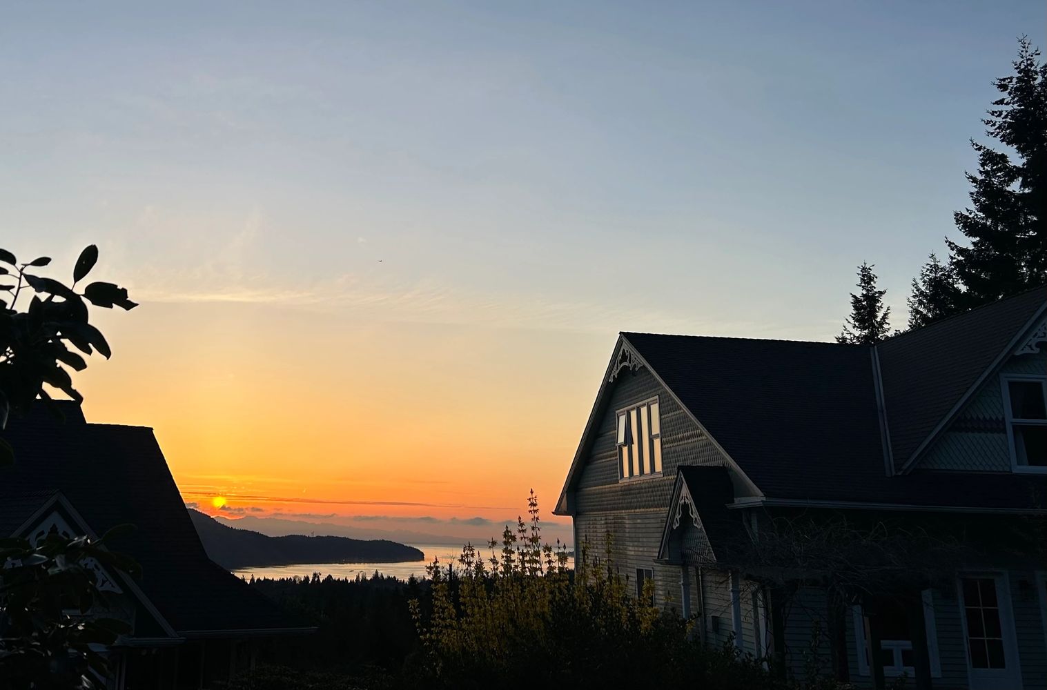 Morning often begins with sunrise over Nanoose Bay. The first light slowly appears over the ocean and distant mountains, creating a peaceful start to the day. Some guests enjoy quiet meditation or yoga practice, while others simply sit with a cup of tea and watch the changing colors of the sky.